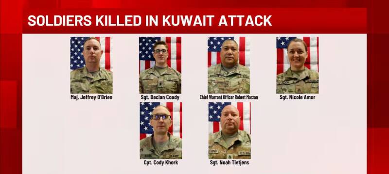 All six were Army Reserve soldiers assigned to the 103rd Sustainment Command out of Des Moines, Iowa — a logistics unit, the people who keep troops fed and fueled and supplied. Not front-line combatants. Supply chain soldiers. The people who make everything else possible, working from a makeshift operations center in a triple-wide trailer at a civilian port in Kuwait. When the drone came, there were no warning sirens. No time to run for a bunker. The T-walls surrounding them were built to stop car bombs. There is nothing above a T-wall.